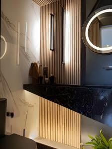 Inside, the accommodation comprises one separate bedroom with two beds and three bathrooms equipped with complimentary toiletries, hairdryer, hot tubs and spa baths. The fully fitted kitchen includes modern appliances such as a coffee machine, dishwasher, refrigerator, stovetop, oven and microwave alongside kitchenware and a barbecue grill. Additional amenities feature air conditioning with individual control for the room temperature plus heating options.