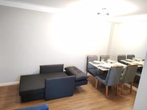 The apartment includes two bedrooms and two bathrooms fitted with showers and complimentary toiletries such as shampoo, conditioner, body soap and hairdryer. The fully equipped kitchen boasts an oven, stovetop, microwave, toaster, refrigerator along with tea and coffee making facilities plus kitchenware for dining convenience. Guests will also find a dining table inside the unit alongside amenities like a washing machine, ironing facilities including iron and ironing board, wardrobe closet space as well as sofa beds providing six beds total.