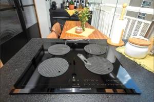 The accommodation includes one bedroom with individually controlled air conditioning, a seating area with a flat-screen TV and sofa bed, as well as wardrobe space. The kitchen is fully equipped with an oven, stovetop, microwave, refrigerator, coffee machine, electric kettle and tea and coffee making facilities. Additional room features include a work desk, washing machine, tumble dryer for clothes, iron and clothes drying rack.
