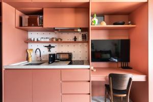 Guests can enjoy wellness facilities such as an outdoor swimming pool available year-round on the rooftop as well as sauna access. The building also features luggage storage services and lift access. On-site dining options include a bar for convenience.