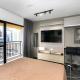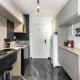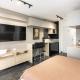 Zakwaterowanie obejmuje jedną sypialnię z jednym łóżkiem oraz łazienkę wyposażoną w wannę lub prysznic wraz z podstawowymi kosmetykami takimi jak mydło do ciała. Aneks kuchenny zawiera płytę grzewczą, lodówkę, mikrofalówkę, minibar oraz ekspres do kawy i stół jadalny dla wygody podczas pobytu.