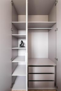 Inside the holiday home, guests will find one bedroom furnished with a single bed along with a dressing room and wardrobe for storage needs. The fully equipped kitchen includes modern appliances such as a stovetop, oven, refrigerator, microwave, coffee machine and toaster alongside kitchenware and dining table for comfortable meal preparation.