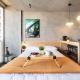 Tento studiový apartmán má jednu postel a vybavený kuchyňský kout s varnou deskou, lednicí, mikrovlnnou troubou, kávovarem, nádobím i sušičkou na prádlo. Další zařízení zahrnují individuálně ovládanou klimatizaci, pracovní stůl, posezení, skříň nebo šatní skříň, žehličku, pračku i ložní prádlo s ručníky.