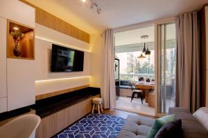 Красивое студио с небольшой, но хорошо оборудованной кухней и удобной кроватью. Матрас на двуспальной кровати проваливался, из-за чего спалось не очень комфортно. Персонал вежливый и быстро решал все вопросы. Расположение отличное, всё рядом и удобно.
