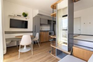 В апартаментах оборудована мини-кухня с посудой и принадлежностями для приготовления пищи: плитой, холодильником и микроволновой печью, также имеются чайник и кофеварка. Для удобства гостей предусмотрена сушилка для одежды. В студии есть утюг с гладильной доской и стиральная машина, предоставляются постельное бельё и полотенца.