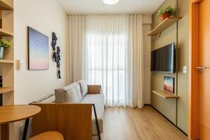 Accommodation at BHomy Contemporâneo comprises one separate bedroom, a living room with a television, and a fully equipped kitchen complete with an oven, microwave, stovetop, refrigerator, kitchenware as well as tea and coffee making facilities. The bathroom features hairdryer amenities along with shampoo, conditioner, body soap, linens include towels and bed linen alongside ironing facilities such as an iron and ironing board plus a wardrobe for storage.