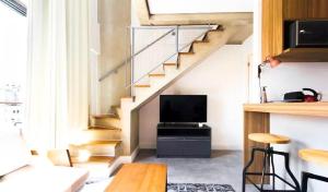 Guests benefit from services including a 24-hour front desk and laundry facilities paired with privacy ensured by a private entrance. Free WiFi is available throughout the premises while safety measures include an in-room fire extinguisher. Additional conveniences consist of television access in the living area plus lift access within the building.