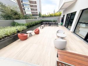 Die klimatisierte Unterkunft Brooklin Design e Luxo - Próx Metro & Sh Morumbi in São Paulo verfügt über einen Balkon und umfasst 1 Zimmer. Das Apartmentgebäude ist mit einem Aufzug ausgestattet und bietet den Gästen einen einzigartigen Picknickbereich.