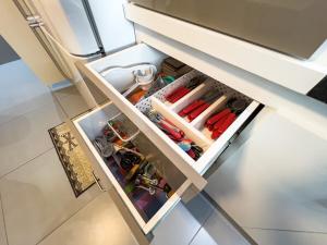 L’appartamento comprende una camera da letto con tre letti, due bagni e un angolo cottura completamente attrezzato, ideale per cucinare e conservare gli alimenti. Gli ospiti possono usufruire dell’intrattenimento offerto dalla TV a schermo piatto presente nell’unità.