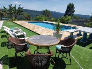 Chácara Acongegate se nachází v São Paulu a nabízí prázdninový dům s vlastním bazénem a bezplatným WiFi. Tento jednopokojový objekt má výhled do zahrady a zahrnuje jednu ložnici.