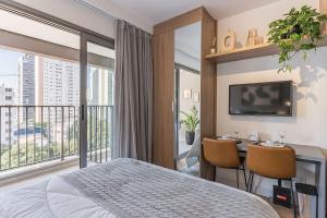 Located just a short distance from Allianz Parque and Latin America Memorial, Charmoso estúdio I Perdizes I Allianz in Sao Paulo includes 1 room and offers free WiFi alongside air conditioning. This apartment features a heated outdoor pool, a garden, and a balcony with views.