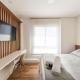 Ubytování zahrnuje jednu postel, klimatizaci a pracovní stůl pro vaše potřeby produktivity. Kompletně vybavená kuchyň obsahuje nádobí, varnou desku, lednici, mikrovlnnou troubu, toustovač, gril na barbecue i kávovar spolu s jídelním koutem pro domácí stravování. Hosté najdou také základní vybavení jako ložní prádlo, ručníky, žehlící prkno a šatní skříň.