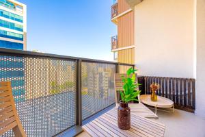 Guests benefit from services including a 24-hour front desk and express check-in/check-out options. The building provides elevator access to upper floors where the apartment is located. Additional facilities include laundry service alongside fitness amenities such as a fitness centre and tennis court.