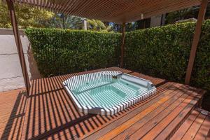 Questo appartamento climatizzato dispone di una camera da letto con due letti e due bagni che includono una vasca idromassaggio privata per momenti di relax. Gli ospiti possono usufruire di un angolo cottura completo di utensili e attrezzature per cucinare e conservare gli alimenti, oltre a un’asciugatrice per i vestiti e un’area salotto ideale sia per rilassarsi che per lavorare.
