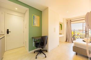 All’interno dello studio gli ospiti troveranno un letto con aria condizionata regolabile singolarmente per il massimo comfort. L’angolo cottura è completamente attrezzato con piano cottura, forno, microonde, frigorifero, macchina per il caffè, utensili da cucina e tavolo da pranzo per preparare i pasti in qualsiasi momento. Il bagno privato è fornito di set di cortesia gratuito e asciugacapelli, tra le comodità aggiuntive figurano lavatrice, ferro da stiro, armadio o guardaroba, biancheria da letto e scrivania.