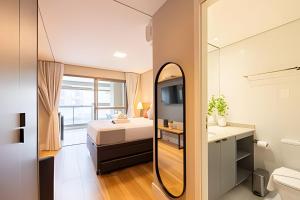 Dotato di aria condizionata e piscina privata, Easy Star - Belo studio com cama queen no coração do Brooklin - SC03I si trova a San Paolo, a soli 5 km dal Tokio Marine Hall. Questo appartamento comprende una camera ed offre WiFi gratuito in tutta la struttura.