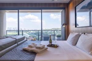 A modern apartment was clean and well organized, featuring a great view of the Royal Jockey Club race track. The location was calm and convenient for various commitments. Building staff were kind and responsive to requests, ensuring smooth check-in and check-out processes. Comfortable beds and quality linens contributed to a pleasant stay.