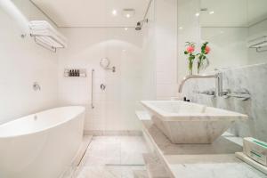 The air-conditioned rooms come equipped with free WiFi, an iPod docking station, and flat-screen smart TVs. Guests enjoy marble bathrooms featuring showers or stylish bathtubs along with hairdryers. Room amenities include feather pillows or non-feather alternatives, bed linen, towels, safes sized for laptops as well as safety deposit boxes. Additional comforts comprise seating areas with sofas, wardrobes or closets, work desks, dressing rooms heating options and soundproofed interiors to ensure restful stays.