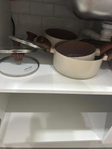 Inside, the apartment includes one bed along with tile flooring and a wardrobe for storage. The kitchen area comes fully equipped with a stovetop, microwave, refrigerator, kitchenette facilities and necessary kitchenware to prepare meals comfortably. Entertainment options include a flat-screen TV with cable channels and bedside sockets, travel adapters are also available to meet electronic needs.