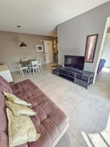 The air-conditioned apartment comprises two bedrooms with three beds in total, one bathroom equipped with a shower, shampoo, conditioner, body soap, hairdryer and toilet as well as a living room containing a sofa bed and seating area. The fully equipped kitchen features a stovetop, refrigerator, microwave and kitchenware alongside a dining table for meals.