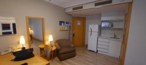 Номер оборудован звукоизолированными стенами, камином и индивидуальной системой кондиционирования воздуха. В распоряжении гостей полностью оснащённая мини-кухня с холодильником и микроволновой печью, а также ванная комната с душем и феном. Дополнительные удобства включают телевизор с плоским экраном и спутниковыми каналами, шкаф для одежды, рабочий стол, будильник, сушилку для белья, подушки без пуха, розетки у кровати и постельное бельё с полотенцами.