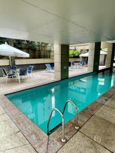 Situato a San Paolo, a 4 km dal Parco Ibirapuera, il Flat estiloso no Merc Times Square c vaga offre una sauna privata e un parcheggio gratuito. L'appartamento dispone di una camera con vista sulla piscina.