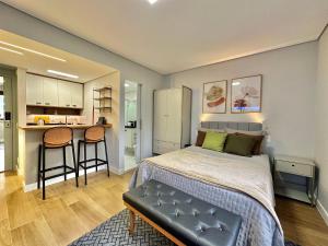 The studio room is air-conditioned and equipped with a full kitchen comprising a stovetop, microwave, kitchenware, and coffee machine. It features one bed along with a sofa bed in the seating area that includes a TV and work desk. Additional in-room amenities consist of an iron, wardrobe or closet space, towels provided with bed linens included as well.