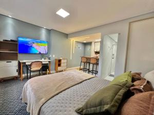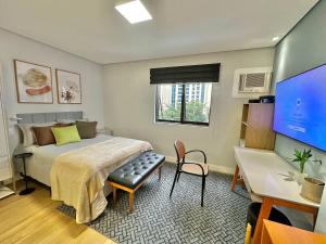 Located 4.2 km from Ibirapuera Park, Flat QI Intelligence próximo metrô Moema - UH1314 in Sao Paulo includes 1 room and offers free WiFi alongside free private parking. The property features an indoor pool, sauna, and a 24-hour front desk.