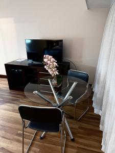 Each unit in the apartment complex comprises one bedroom with one bed, a living room area with a sofa, parquet flooring throughout, and a private bathroom equipped with a shower and complimentary toiletries including shampoo and body soap. Rooms also provide amenities such as ironing facilities including an iron and ironing board, bed linen with non-feather pillows, towels, wake-up service options, work desks with bedside sockets, flat-screen televisions for entertainment as well as air conditioning.