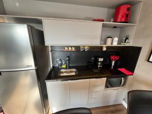 Questo monolocale climatizzato è dotato di un letto, bagno privato con sapone per il corpo, shampoo, balsamo, asciugacapelli e doccia, oltre a pavimenti in legno massello. Gli ospiti possono usufruire di un angolo cottura completamente attrezzato con frigorifero, microonde, utensili da cucina e macchina per il caffè per la preparazione dei pasti. Ulteriori comfort includono area salotto, scrivania da lavoro, armadio e lavatrice.