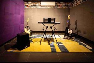 The accommodation comprises one bedroom with a comfortable bed and air conditioning, accompanied by a seating area with a flat-screen TV. Guests have access to an equipped kitchen featuring a stovetop, refrigerator, microwave, coffee machine, kitchenware, minibar, tea and coffee making facilities as well as a dining table. Additional in-room amenities include a washing machine, sofa, work desk, wardrobe/closet, carpeted floor, non-feather pillows with bed linen and towels provided.
