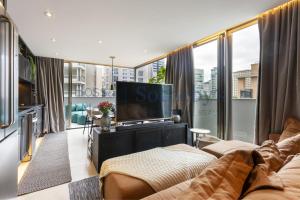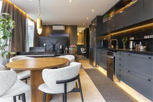 The spacious apartment features one bedroom with air conditioning and heating, complemented by a flat-screen TV with satellite channels. A fully equipped kitchen boasts modern appliances such as an oven, stovetop, dishwasher, microwave, refrigerator, coffee machine as well as tea and coffee making facilities. Additional in-room amenities include towels, bed linen, an iron with ironing board, wardrobe space, washing machine with clothes drying rack and a work desk.