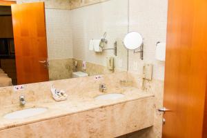 The hotel boasts several dining options including Restaurante Mediterrâneo serving international cuisine throughout the day alongside Riviera Bar offering a select list of drinks. Guests benefit from free WiFi available throughout all areas as well as private parking for an extra fee. Additional facilities include a fitness center, sauna, lift access to upper floors making it wheelchair accessible entirely on-site laundry services such as dry cleaning and ironing service plus daily housekeeping.