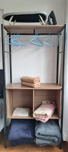 This apartment features one separate bedroom along with a living room equipped with a sofa bed and flat-screen TV. The fully equipped kitchen contains a stovetop, refrigerator, microwave, toaster, electric kettle, tea and coffee making facilities, dining table, kitchenette area, and all necessary kitchenware for meal preparation. The private bathroom comes with a shower and hairdryer while additional room amenities include an iron with trouser press, clothes drying rack, wardrobe/closet space, work desk seating area with bedside socket access as well as parquet flooring.