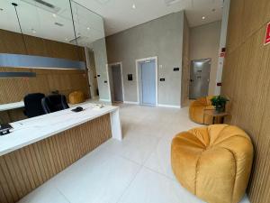 Located just 500 metres from Allianz Parque, PC_502 | Studio novo ao lado do Allianz Parque a 500mts is a modern apartment in São Paulo featuring air conditioning and city views from its balcony. This one-room accommodation includes free WiFi and offers guests a comfortable stay with access to a lift and a 24-hour front desk.