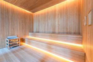 Cet appartement d’une chambre dispose d’un coin cuisine entièrement équipé avec plaque de cuisson, réfrigérateur, micro-ondes, grille-pain, cafetière et bouilloire électrique ainsi que la vaisselle et une table pour les repas. L’espace salon bénéficie d’une climatisation individuelle, d’une télévision écran plat, d’un lave-linge, d’un bureau de travail, d’un fer à repasser et d’une armoire dressing. La salle de bain inclut un sèche-cheveux, des toilettes et un sauna privé dans la chambre.