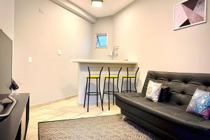 El alojamiento dispone de dos camas en el dormitorio, aire acondicionado individualmente controlado y ropa de cama para mayor comodidad. La cocina americana totalmente equipada incluye fogones, horno, microondas, tostadora, cafetera y utensilios de cocina, además cuenta con secadora para la ropa. El baño ofrece artículos de aseo gratuitos y una sauna privada dentro del apartamento.