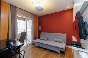Guest rooms are equipped with air conditioning and feature seating areas with sofas or sofa beds along with rollaway beds available on request. Each room provides a fully equipped kitchenette including a refrigerator, microwave, stovetop or toaster options as well as kitchenware and coffee machines for convenient meal preparation. Bathrooms come with private saunas in-room where specified alongside showers, hairdryers, complimentary toiletries and linens such as bed linen and towels are supplied.
