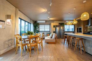 Жилая площадь включает одну спальню с кондиционером и двумя кроватями, а также собственную ванную комнату с душем и феном. Для приготовления пищи предлагается полностью оборудованная мини-кухня с духовкой, плитой, холодильником, микроволновой печью, кофеваркой и кухонной утварью, имеется также сушилка для одежды. В комнате есть шкаф для одежды, письменный стол, диван-кровать и синтетические подушки без пера, предоставляются полотенца и постельное белье.