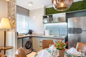 El alojamiento dispone de dos dormitorios con un total de tres camas y una cocina americana equipada con placa de cocción, nevera, microondas, tostadora, cafetera y utensilios de cocina. Entre las comodidades adicionales del apartamento destacan aire acondicionado con control individual, televisor pantalla plana con servicios de streaming, lavadora, caja fuerte, escritorio y zona de estar. Se proporcionan toallas y ropa de cama junto con artículos básicos para el baño como champú, acondicionador, jabón corporal y albornoz.