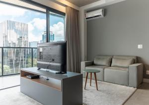 Featuring an outdoor swimming pool, the 3.5 km from Ibirapuera Park Loft exclusive 49m - Vila Olímpia is located in Sao Paulo and includes one room with city views. This apartment offers a private entrance, balcony, and air conditioning for a comfortable stay.