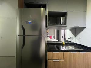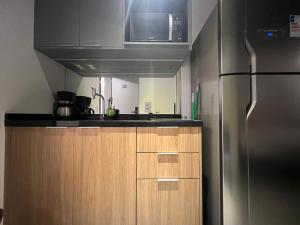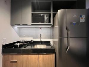 The location was excellent, situated directly above the Paraíso metro station with easy access. The building offered great amenities including a gym, pool, laundry facilities, and multiple elevators that minimized waiting times. The apartment featured practical furnishings such as a microwave, refrigerator, TV, and Wi-Fi. Cleanliness was maintained throughout the stay. The condominium also included a mini market and snack bar for added convenience.