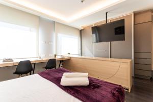 Guests benefit from free WiFi coverage throughout the property along with cable TV channels on a flat-screen television. Additional conveniences include an iron, work desk, wardrobe closet, washing machine and rollaway extra bed options. Free parking is available on site while lift access ensures ease of movement within the building.
