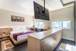 Inside the air-conditioned apartment, guests will find a separate bedroom and living room alongside a bathroom fitted with a shower and complimentary toiletries including shampoo and body soap. The kitchen area features full facilities such as a microwave, coffee machine, minibar, tumble dryer for clothes as well as kitchenware and dining table to prepare meals comfortably.