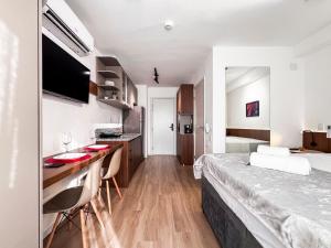 Each air-conditioned unit comes with a fully equipped kitchen featuring a stovetop, refrigerator, microwave or oven depending on the room type, along with kitchenware and dining areas perfect for preparing meals at your convenience. Rooms include flat-screen TVs and coffee machines while some offer sofa beds or sofas plus work desks for added comfort during your stay. Guests also benefit from private bathrooms supplied with complimentary toiletries such as shampoo, conditioner, body soap and hairdryers.