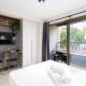 Každé klimatizované studio má televizor s plochou obrazovkou se streamovacími službami, jednu postel a vlastní koupelnu vybavenou bezplatnými toaletními potřebami, sprchovým koutem a fénem. Hosté mohou využívat plně vybavený kuchyňský kout s vařičem, lednicí, mikrovlnnou troubou i kávovarem a nádobím. Další vybavení pokojů zahrnuje zvukovou izolaci, posezení s pohovkami, pracovní stůl, šatní skříň nebo skříň na oblečení, žehličku a individuálně ovládané topení i klimatizaci.