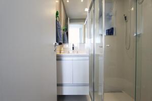 The accommodation comprises one bedroom with one bed and features amenities including air conditioning and a washing machine for added convenience. The flat-screen TV provides entertainment options while guests prepare meals using the full kitchen.