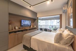 Acogedor estudio con aire acondicionado y balcón, Perfeito Studio en el corazón de Moema OJ 614 Jurupis, ubicado en São Paulo a solo 3,9 km del Parque Ibirapuera. Dispone de una habitación con vistas a la ciudad.