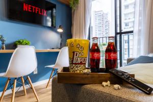 L'alloggio comprende una camera da letto con due letti oltre a un soggiorno dotato di divano letto e zona salotto. Gli ospiti troveranno aria condizionata in tutti gli ambienti, TV, scrivania per il lavoro, armadio, presa accanto al letto e cuscini sintetici non piumati. Il bagno privato è completo di set cortesia gratuito con shampoo, balsamo, sapone per il corpo e asciugacapelli.