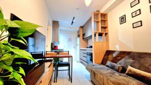 Accommodation comprises one separate bedroom with two beds, a living room, and an equipped kitchen featuring a refrigerator, microwave, coffee machine as well as full kitchen facilities. The private bathroom includes complimentary toiletries, shower options or bathtub facilities along with body soap and a hairdryer. Additional in-room amenities include towels, bed linen with feather pillows, an iron and work desk.